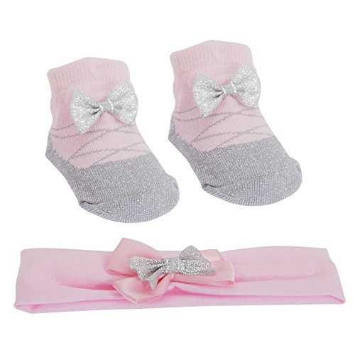 ベビー・赤ちゃん ガールズ リトル・エンジェル キラキラリボンつき 靴下・ヘアバンドのセット ベビーアクセサリー2点セット 女の子 (6-12ヶ月) (ピンク/シルバー)