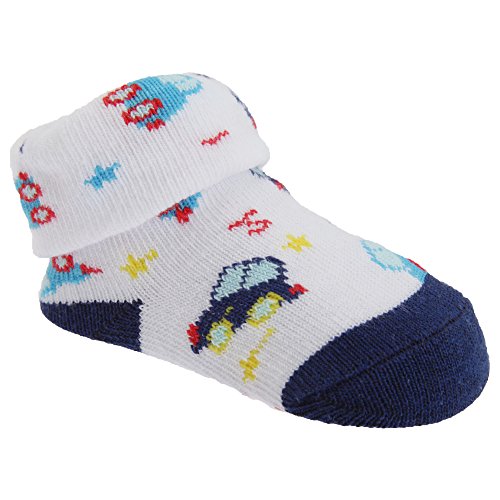 赤ちゃん・ベビー用 ボーイズ 車のデザイン ギフトポーチつき ベビーソックス 靴下 男の子 (6-12ヶ月) (ネイビー/ホワイト)
