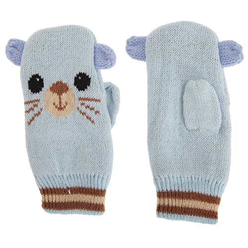 ベビー用ニット手袋。どうぶつのデザイン。手首部分は伸縮性のあるリブ。手を温かく保ちます。ワンサイズ。素材:アクリル100%。手洗いのみ。