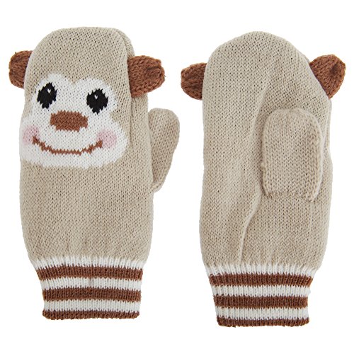 ベビー・赤ちゃん用 みみつき どうぶつのニット手袋 ベビーミトン ニットグローブ 冬 (ワンサイズ) (ベージュ)