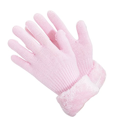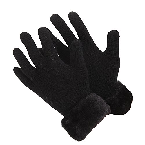 キッズ・子供用 フェークファーカフ ニット手袋 ニットグローブ 冬 防寒 女の子 (ワンサイズ) (ブラック)