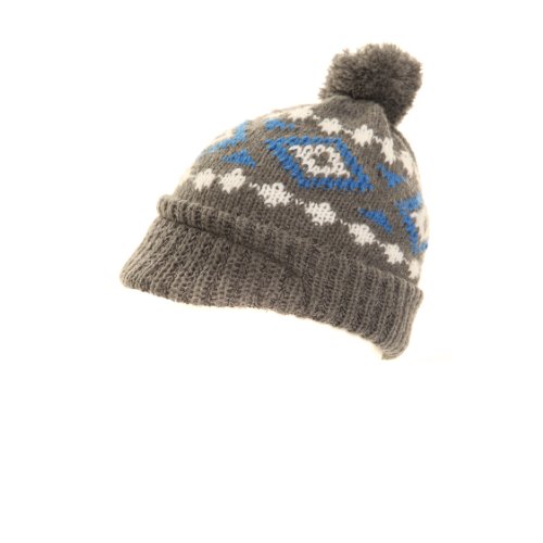 冬用あたたかポンポン付きニット帽。柄入り。4-8歳用。アクリル100%。お手入れは手洗いのみ。