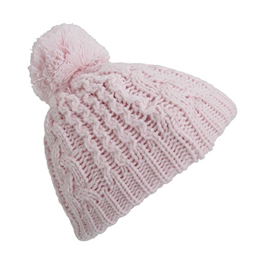 赤ちゃん・ベビー用 ポンポンつき ケーブルニット帽 バブルハット ビーニーハット ニットキャップ 帽子 冬 (ワンサイズ) (ピンク)