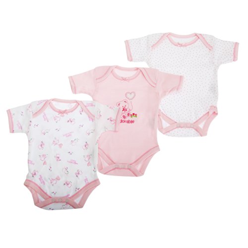 赤ちゃん・ベビー用 テディーベア ピンク 半袖ボディースーツ ロンパース ベビー肌着 (3枚入り) 女の子 (身長:62-68cm 体重:8kg (3-6ヶ月)) (写真参照)