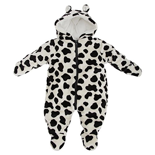 赤ちゃん・ベビー用 どうぶつ耳付フード 冬用あったか アニマルロンパース オールインワン つなぎ カバーオール ベビー着ぐるみ (6-9ヶ月) (ダルメシアン)