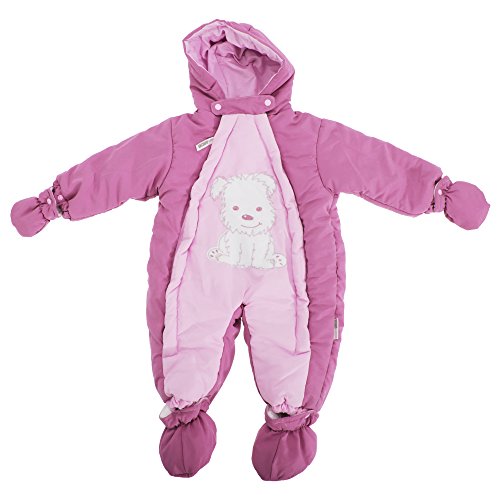 赤ちゃん・ベビー用 いぬのデザイン あったか フードつきスノースーツ ロンパース オールインワン つなぎ カバーオール 冬 (9-12ヶ月) (ピンク)