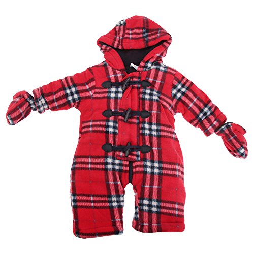 ベビー・赤ちゃん用 タータンチェック ダッフルコート風 フードつきボディースーツ 長袖ロンパース カバーオール オールインワン つなぎ 冬 (0-3ヶ月) (レッド)