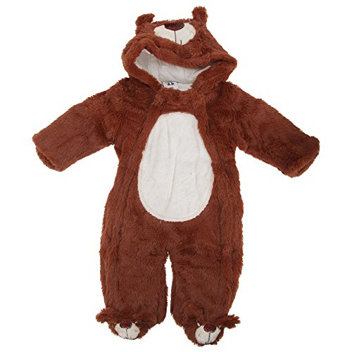 ベビー・赤ちゃん用 ふかふかテディーベア フードつきボディースーツ 長袖ロンパース カバーオール オールインワン つなぎ 冬 (9/12ヶ月) (ブラウン)