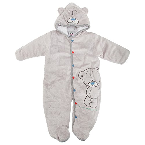 ベビー・赤ちゃん用 ブルーのお鼻 ふかふかテディーベア フードつきボディースーツ 長袖ロンパース カバーオール オールインワン つなぎ 冬 (9/12ヶ月) (グレー)