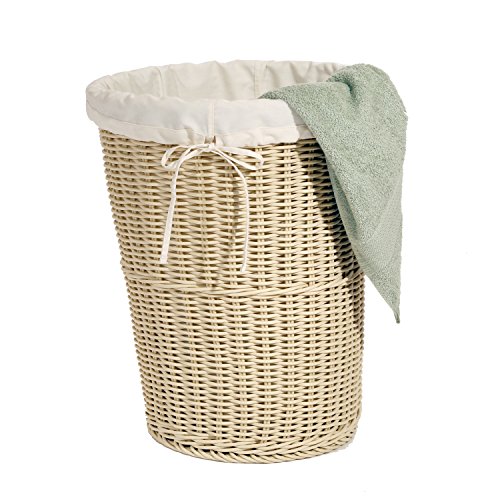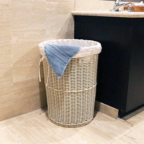 Seville Classics Large円形ウィッカー織りLaundry Hamper / Wキャンバスライナー、ライトブラウン WEB398