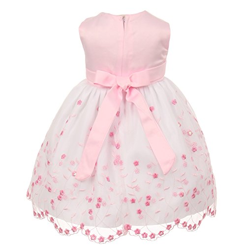 ベビーガールズホワイトピンク花柄Jeweledイースターフラワーガールバブルドレス3 M