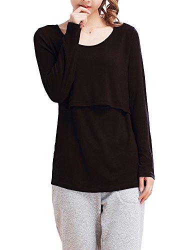 授乳服半袖無地tシャツ夏服マタニティウェアトップス (XL, ブラック2)
