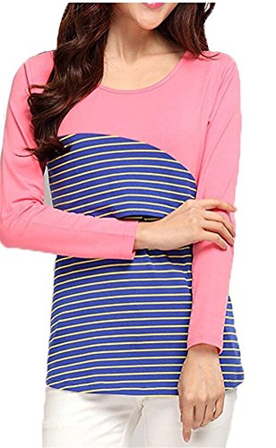 授乳服長袖ボーダーtシャツ夏服マタニティウェアトップス