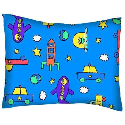 SheetWorld Crib / Toddler Percale Baby Pillow Case - Kiddie Transport - Made In USA by sheetworld