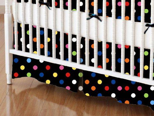- SheetWorld - MINI Crib Skirt (24 x 39) - Primary Colorful Dots Black Woven - Made In USA