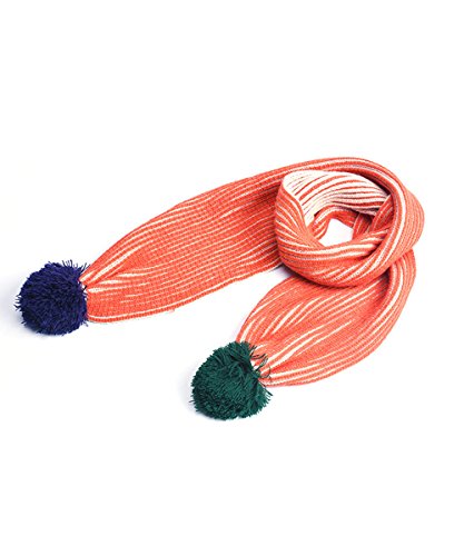 Shellme 児童ストライプ帽子 子供ニット帽 マフラー 2点セット 赤ちゃんニット帽子 キッズニット帽 カラー毛玉 ポンポン 秋冬 防寒 柔らか 男の子 女の子 48-54cm
