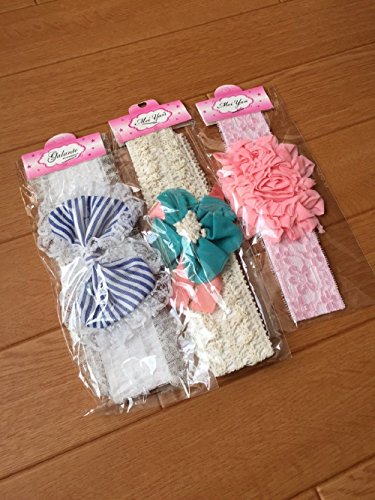 Sherry ベビー カチューシャ ヘアーバンド 3点 セット / リボン 花 レース フリル