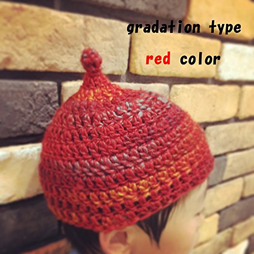 やわらか どんぐり帽子 手編み の かわいい グラデーション タイプ ベビー から 大人 まで (02 【 レッド M 】)