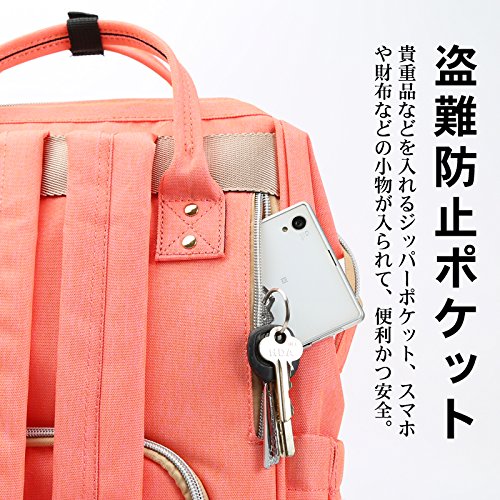- 【盗難防止ポケット】:背当てにはファスナーポケットがあるので、スマホやキーケース、パスケース、チケット、財布などの小物が入られて、便利かつセーフ。
