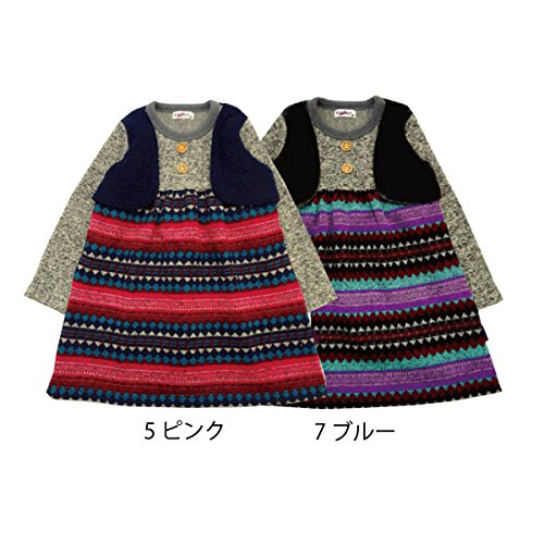 【SiShuNon/Kiccoly】横編風プリントベスト付ワンピース キッコリー 横編風 プリント ベスト付 ワンピース 90 7 ブルー