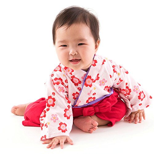 袴 ロンパース 女の子 カバーオール ベビー キッズ 巫女 レッド 70~80サイズ
