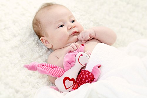 Age: 6m+;Materials: upper material made from cotton, microfiber plush, filling is made of cotton wool (polyester);Measurements: 17 cm (approximately 6.75 inches);Care: machine wash at 30C;Made in China