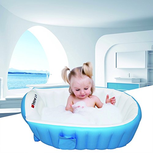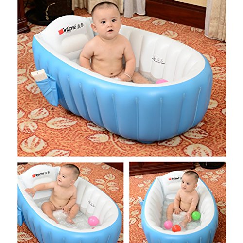 Signstek ベビーバス 折り畳み 空気入れ付き (ブルー)