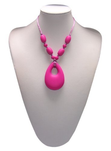 28 teething necklace with 4 oval beads and 4-9mm beads with pendant.;Attractive chewing 'jewels' are made with food-grade, BPA free silicone as found in pacifiers. No PVC, latex, phthalates or metals.;Break-away clasp for safety. Chewing provides relief from teething.;Cheerful colors that complement any outfit and are pleasing to your baby!;Provides multiple chewing surfaces for your baby's delight! Wash frequently for optimal hygiene- dishwasher safe.