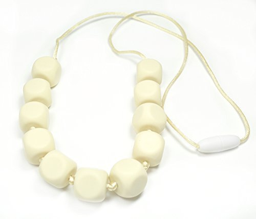 Upbeat, cube-shaped silicone chew beads for mom to wear. This teething necklace is a favorite among moms!;Individually-knotted with coordinating cord and breakaway clasp for safety.;Babies love playing with these dice-shaped beads!;Attractive silicone jewels are made with food-grade, BPA free silicone as found in pacifiers. No PVC, latex, phthalates or metals.;Women are discovering the fun in wearing silicone jewelry!