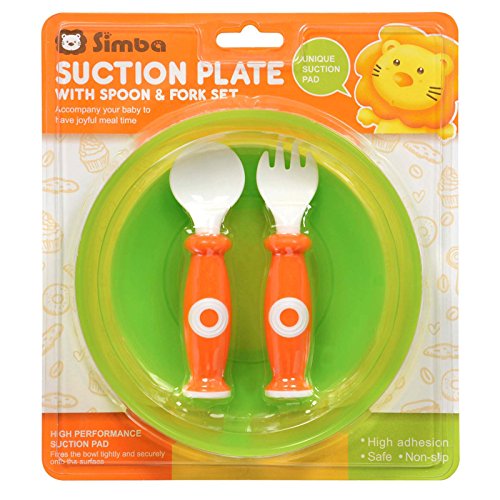 Strong suction pad keeps the plate in place;Utensils with handle designed for baby stubby hands;Ergonomically designed handles