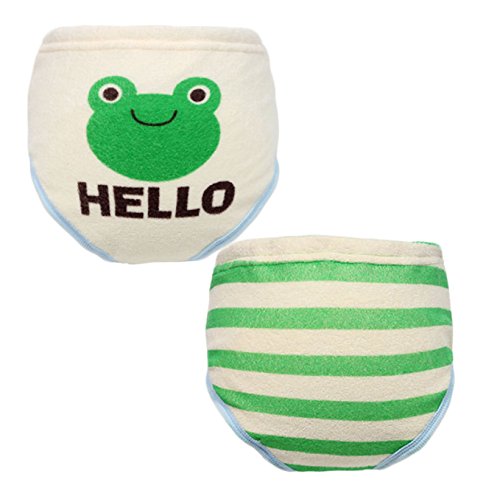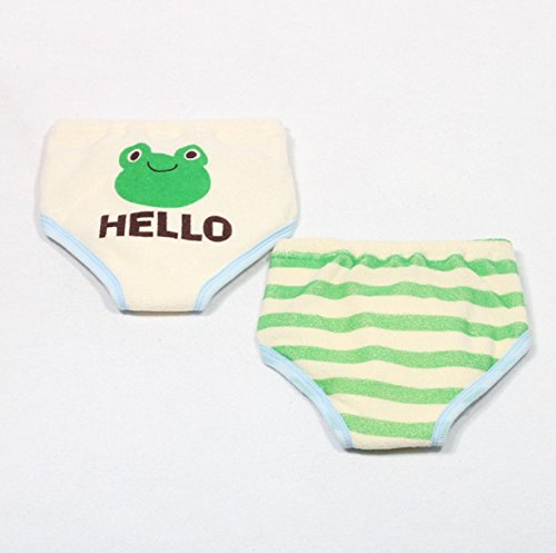 Simple Plan 6層 幼児 ベビー かわいい 動物柄 ボーダー パンツ トレーニングパンツ 2枚組 ショーツ 3カラー 4サイズ選択可能 (90, グリーンカエル)