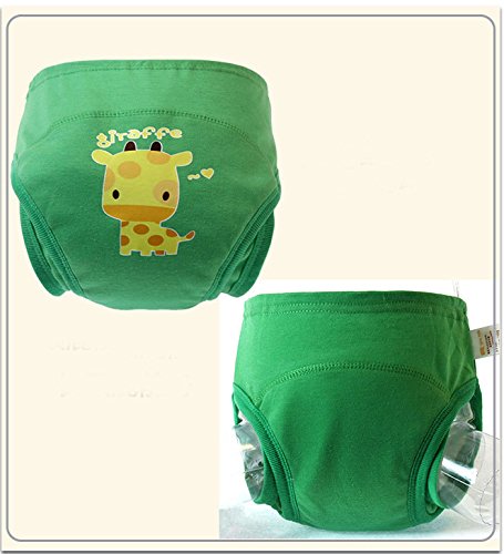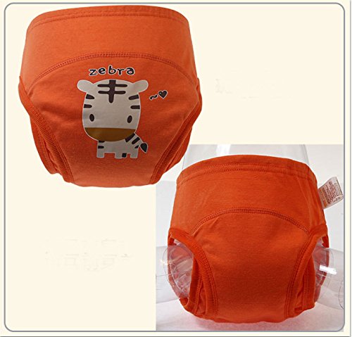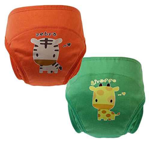 Simple Plan ベビー かわいい 動物柄 トレーニングパンツ 4層 100%コットン製 立体構造 漏れにくい 2枚組 ショーツ 肌着 (90, オレンジ+グリーン)