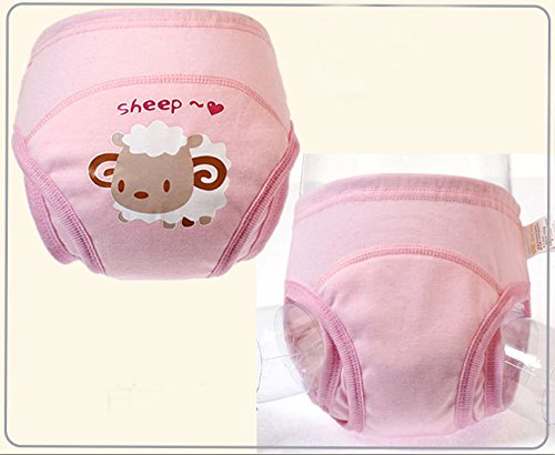 Simple Plan ベビー かわいい 動物柄 トレーニングパンツ 4層 100%コットン製 立体構造 漏れにくい 2枚組 ショーツ 肌着 (110, ピンク+クリーム)