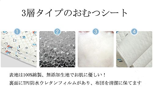 - 赤ちゃんが寝がえりなどまだうつ伏せが多い時など、よだれやミルクの吐き戻しにも便利です。■体調が悪い(嘔吐)時にも防水シーツを交換するだけで布団を清潔に保てます。パンツトレーニング中はおねしょが心配。寝ている間もあんしん、快適。おねしょしてもへっちゃら。ママも安心です。