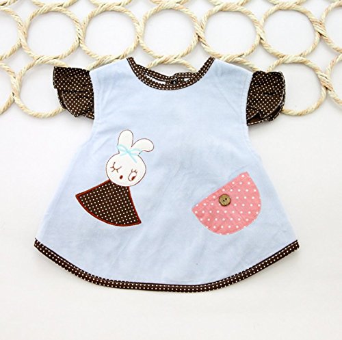 Simple Plan ベビー 子供 お食事用 お絵描き ねんど遊びなどに最適 スタイ エプロン ビブ かわいい うさぎ 動物柄 ドット 水玉 100%綿製 防水 ポリエステル ポケット付き 柔らかくて軽量 (ブルー)