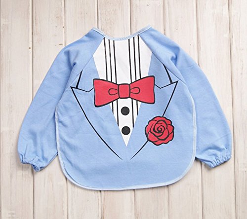 Simple Plan ベビー 赤ちゃん 子供 お食事用 長袖エプロン 防水 綿製 柔らかくて軽量 女の子 男の子 0~3歳 ブラウス (ライトブルー)