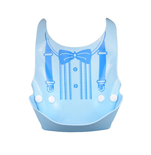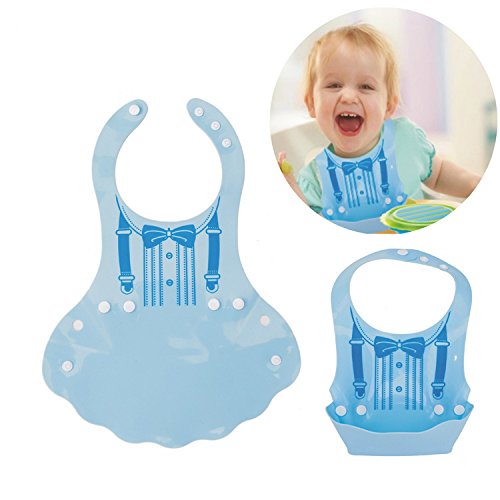 Simple Plan ベビー キッズ 折りたたみ お食事用 シリコンビブ ソフトスタイ 2way 油が落ちる 防水 洗える エプロン かわいいリボン (ブルー)