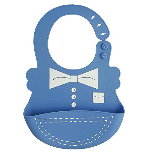 Simple Plan ベビー 子供 お食事用 紳士 シリコンビブ ソフトスタイ 油が落ちる 防水 洗える エプロン かわいいネックレス (ブルーリボン)