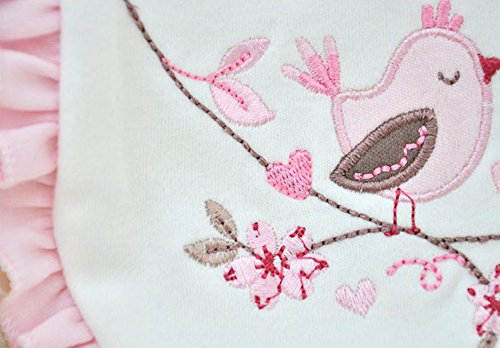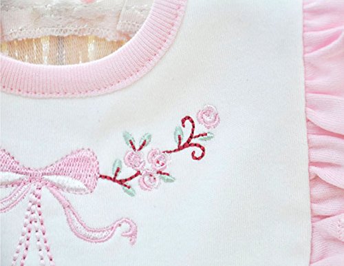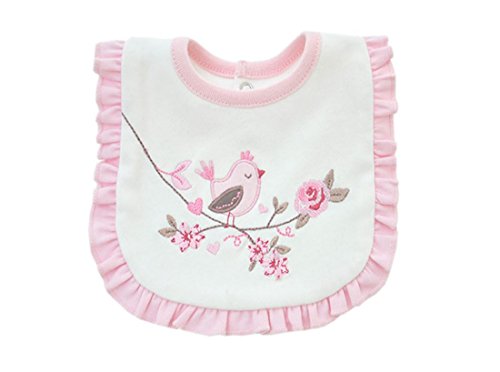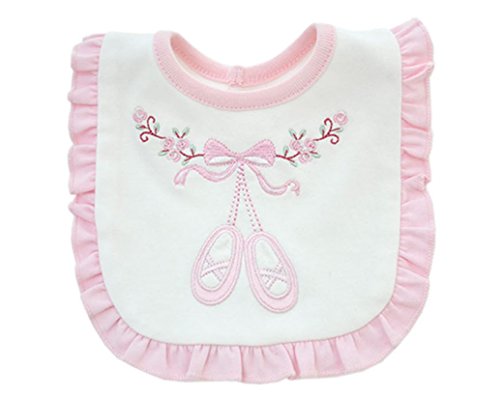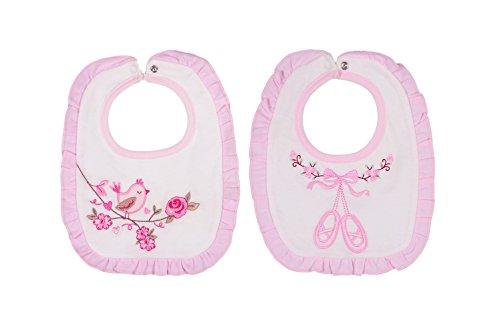 Simple Plan ベビー 女の子 刺繍 よだれかけ スタイ ビブ 2枚セット かわいい レース 鳥 花 リボン バレエシューズ 100%コットン製 スナップボタン式 ピンク