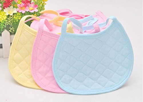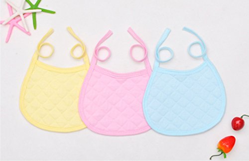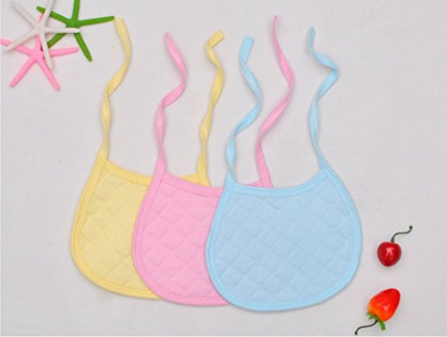 Simple Plan ベビー 子供 シンプル 無地 よだれかけ スタイ ビブ 3枚セット 100%コットン製 結び式 サイズ調整可能 ピンク ブルー イエロー 3カラー