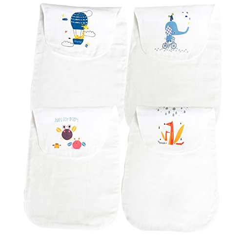 Simple Plan ベビー 赤ちゃん 子供用 かわいい 北欧風 動物柄 汗取りパット 4枚セット 100%綿製 柔らか 無添加ガーゼ生地 24cm*45cm (B)