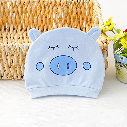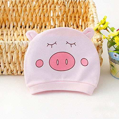 Simple Plan ベビー 赤ちゃん 新生児 ニット 帽子 ハット 100%綿製 ピンク ブルー 動物柄 かわいい ねこ 子豚 2枚組 女の子 男の子 (子豚)