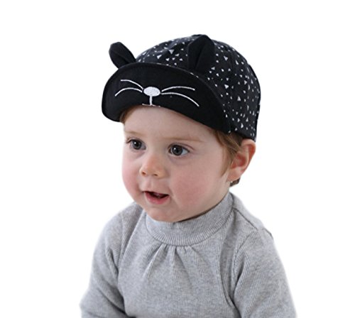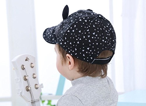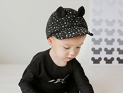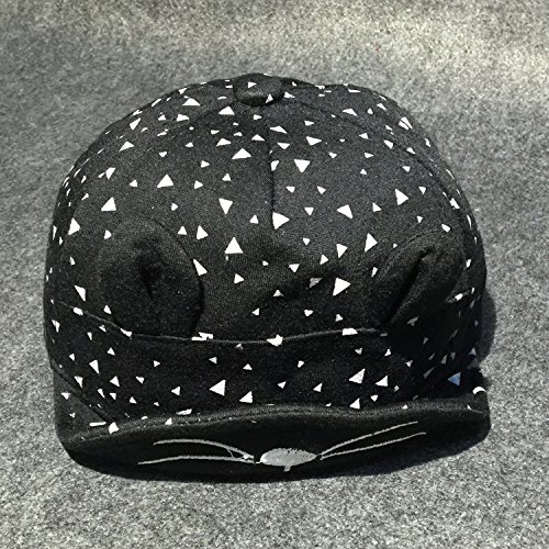 Simple Plan ベビー 子供用 ねこみみ 野球 キャップ 帽子 UVカット 日焼予防 ハット 100%綿製 男女兼用 46~50cm 6~36ヶ月 サイズ調整可能 ボーダー ドット (ブラック)