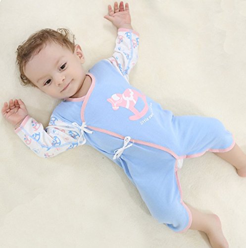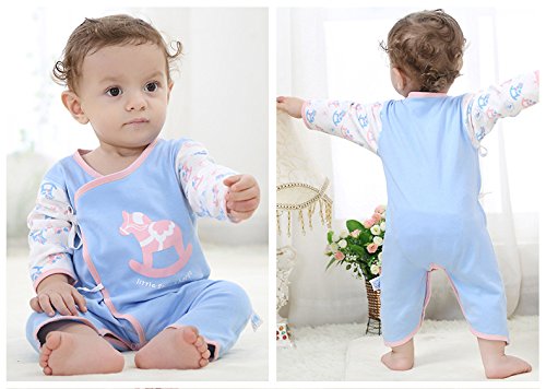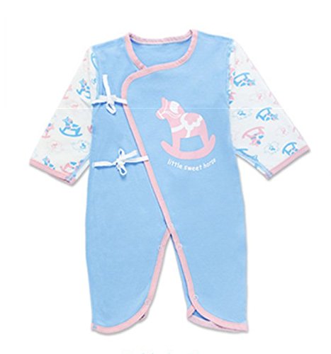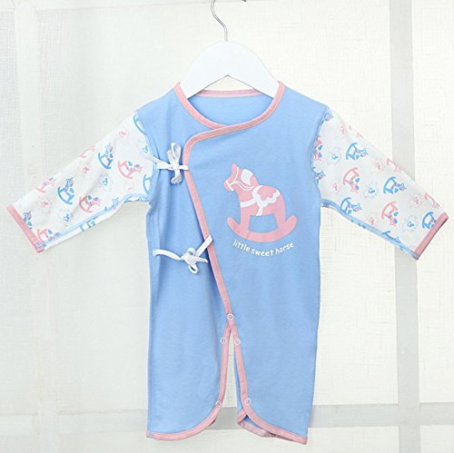 Simple Plan ベビーロンパース 100%綿製 新生児 赤ちゃん 長袖 カバーオール 肌着 前開き かわいい 木馬 オールシーズン 0-6ヶ月 (50, ブルー)