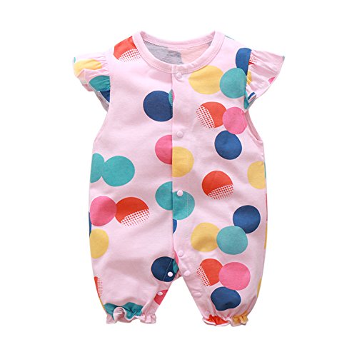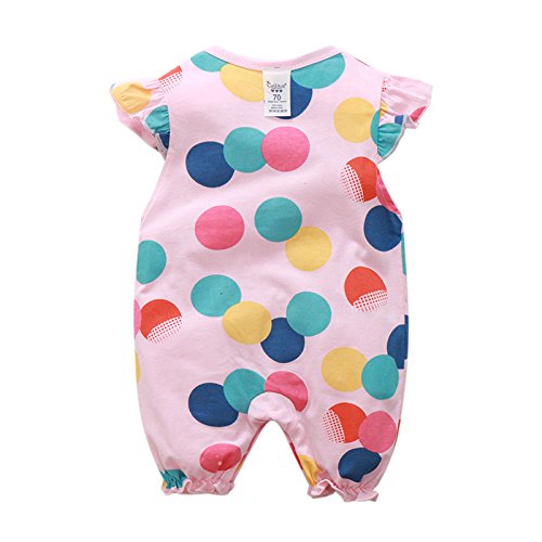 Simple Plan かわいい カラフル ドット 水玉 ベビー 新生児 ロンパース 半袖 カバーオール 100%綿製 柔らか 通気性 吸湿性良い 前開き 女の子 男の子 (80, ピンク)