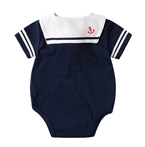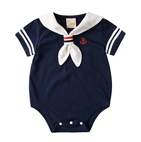 Simple Plan ベビー セーラー服 ボディースーツ 半袖 100%綿製 柔らか 通気性 吸湿性良い (80, ネイビーボディースーツ)