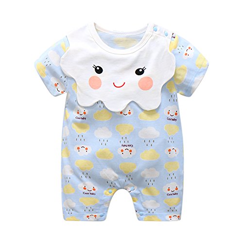 Simple Plan ベビー 新生児から かわいい雲 ビブ付き ロンパース 半袖 カバーオール 綿100% 柔らか お肌に優しい 女の子 男の子 0~12ヶ月 (80, ブルー)