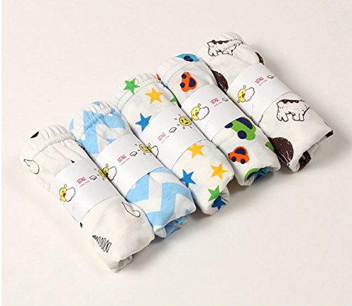 Simple Plan 男の子 子供用 ベビー キッズインナー 100%綿製 パンツ ショーツ ブリーフ 下着 5枚組 星柄 ボーダー クマ ブルー グリーン イエロー 5サイズ選択可能 オールシーズン (120)