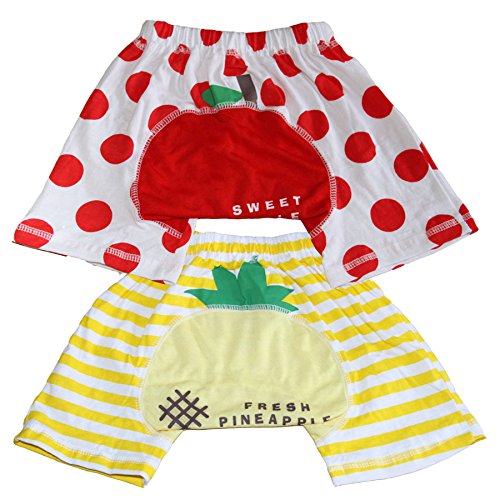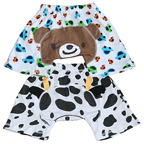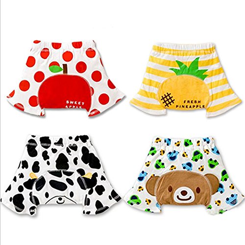 Simple Plan ベビー キッズ 4枚セット ショートパンツ ハーフパンツ おしりにお顔 綿100% 柔らか 男の子 女の子 5分丈 かわいいボーダー ドット (100, A)
