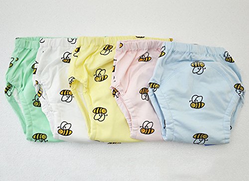 Simpleplan 100綿製 幼児 ベビー かわいい ミツバチ 動物 4層 パンツ トレーニングパンツ 5枚組 (100)